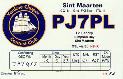 | Sint Maarten Rcvd: 2024/01/19 Mgr: N2HXから1カ月 QSO: 2023/12/03 15m FT8 Detail: Click here |