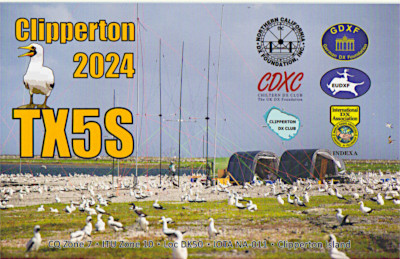 | Clipperton Is Rcvd: 2024/05/20 Mgr: M0URX OQRSで3.5カ月 QSO: 2024/01/23-27 40m 20m 10m FT8 20m 10m CW 10m SSB Detail: Click here |