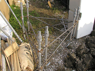 完成した基礎部分。 建設をしたFTIの人が基礎工事を見て、今までで一番きれいな基礎工事と言っていた。 配管部分の処理は、電気工事屋に特注して作成してもらった。 |