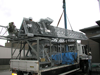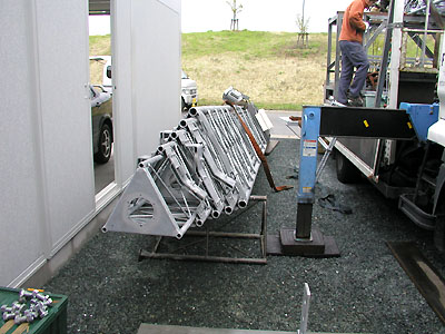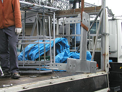 いったんタワーを下に降ろし各部点検する。 |