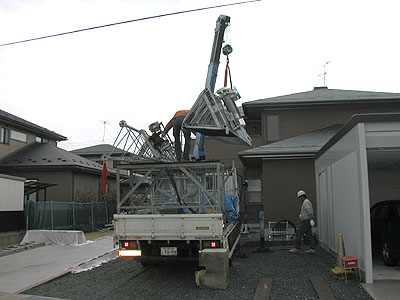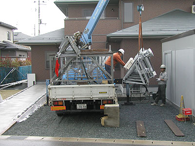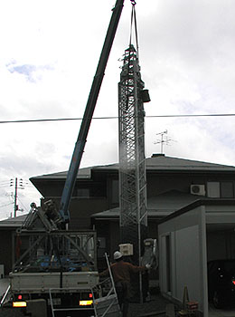 タワーがもう一本見えるが、どこかで撤去してきたもの。 ちなみに、前の家に建てていたクリエートのタワーの撤去工事もFTIに依頼した。 |
