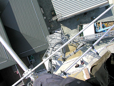 タワートップから真下を写した。最上部のケーブル処理が分る。 |